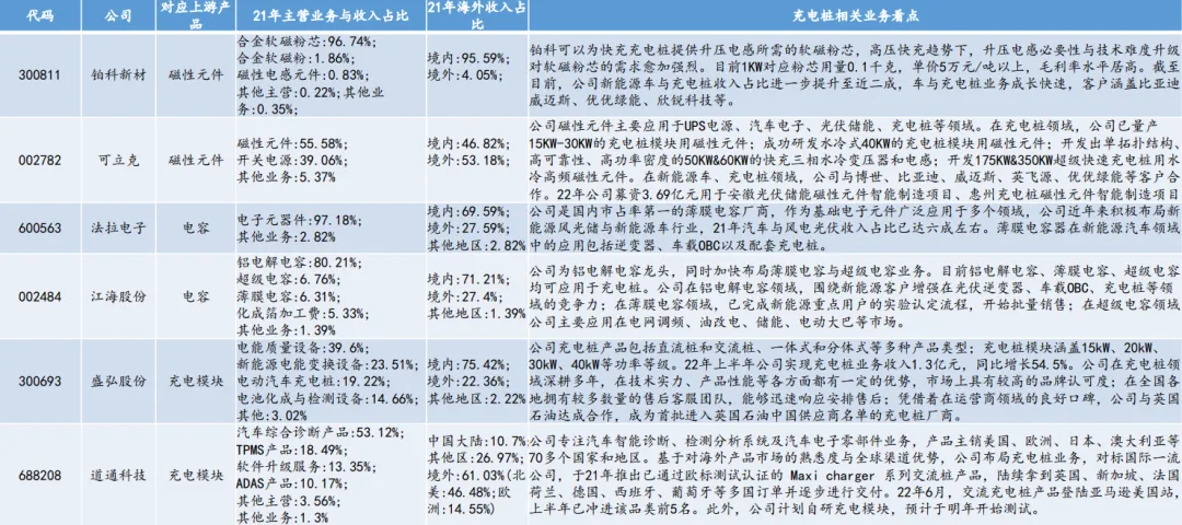 ❹ 充电桩上游受益标的看点