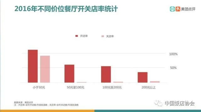 从分析来看,小于50元的餐饮形态因其投入低、进出小、转型快,相比人均50元以上的店生命力会短暂些(大部分),所以此类业态是高淘汰率、高竞争。