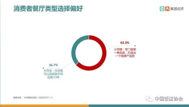 现在的消费者更注重小而精小而美的专业品类餐厅,例如现在的消费者倾向于在日料店吃三文鱼刺身才会更正宗,而不选择大而全的全品类餐厅。