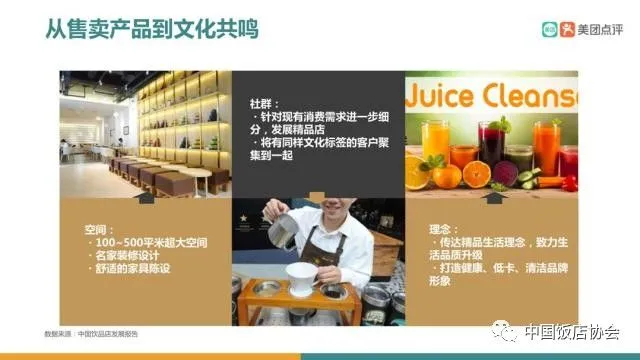 总的讲正餐和轻餐的这个界限变得越来越模糊,大家越来越关心口味,关心就餐环境,尤其是一些80后、90后的创业者开始从门店设计、创新菜品、多元化的就餐体验、契合消费者心情需求等方面入手,同时讲究性价比,强调好吃不贵,另外小而精、关注效率与健康是在消费者这一端发生的一些变化。