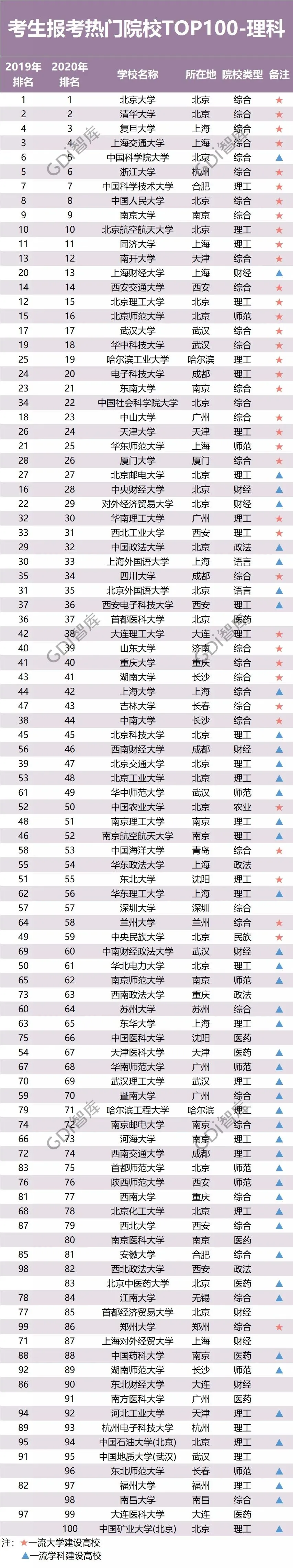 哈尔滨工业大学较2019年上升6位,电子科技大学较2019年上升4位,这两所高校均进入理科榜单前20。