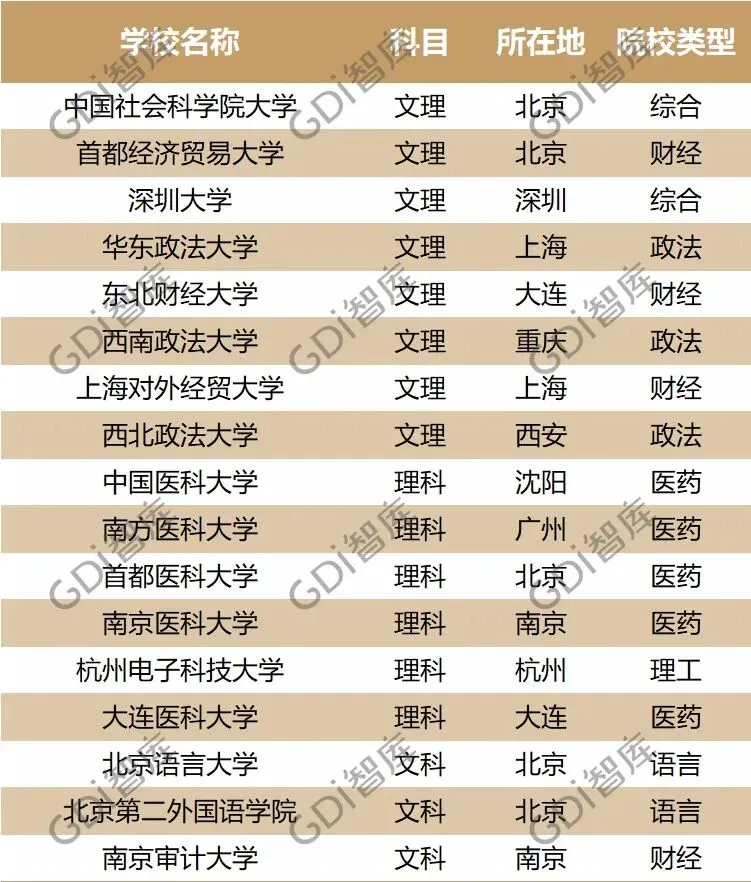 新上榜的3所医药类高校分别为南京医科大学、北京中医药大学和南方医科大学,均地处医疗资源丰富、医疗水平较高地区,南方医科大学是广东唯一上榜的医药类高校。