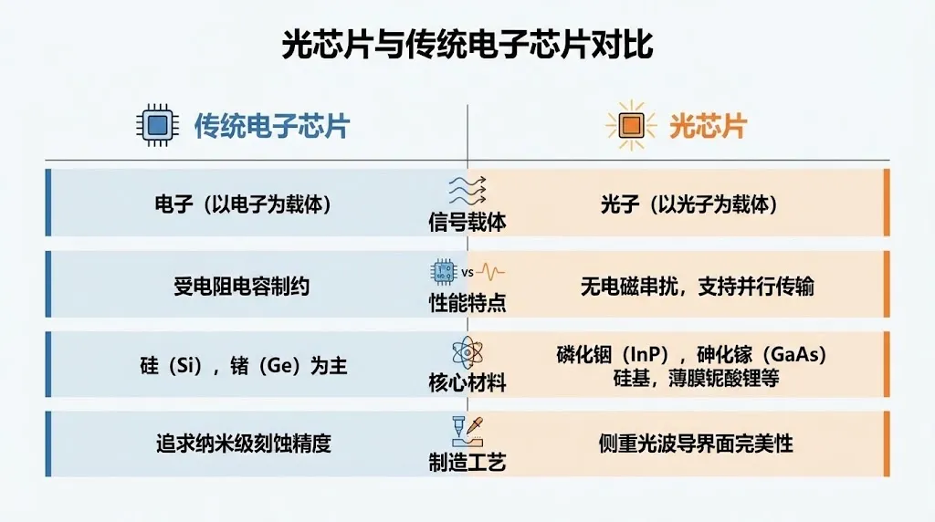 与传统电芯片以电子为信息载体不同,光芯片以光波为载体,具备高带宽、低时延、低功耗的天然优势,是支撑5G通信、AI算力、数据中心等数字经济核心领域的底层核心器件。