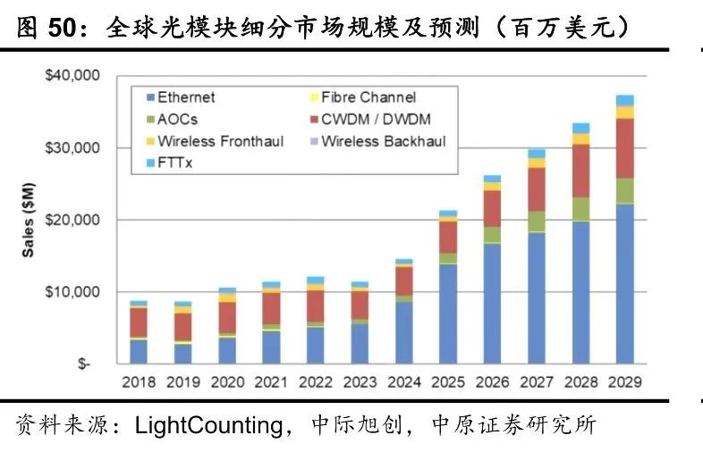 核心客户包括北美云厂商(谷歌、Meta、亚马逊,占全球需求70%)和国内互联网企业(阿里、腾讯、字节跳动)。2024年全球AI数据中心光模块需求超40亿美元,2025年预计达65亿美元(年增速62.5%)。