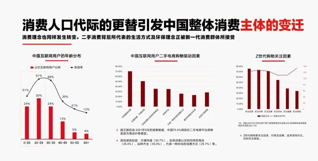 今年1月,Instagram发布的《2022年趋势报告》显示,将近四分之一的人在二手时尚网站上购物,其中大部分都是年轻人。而且,约有24%的年轻人计划通过电商网站或社交媒体销售自己的东西,将旧物循环利用。来自Quest Mobile的《2021新锐品牌人群洞察报告》也显示,在中国,Z世代人群更关注“潮流消费”和“二手交易”,二手消费已成为他们的一大标签。这些年轻人,也因此被称为“循环青年”,他们的这种消费理念,被称为“循环消费主义”。