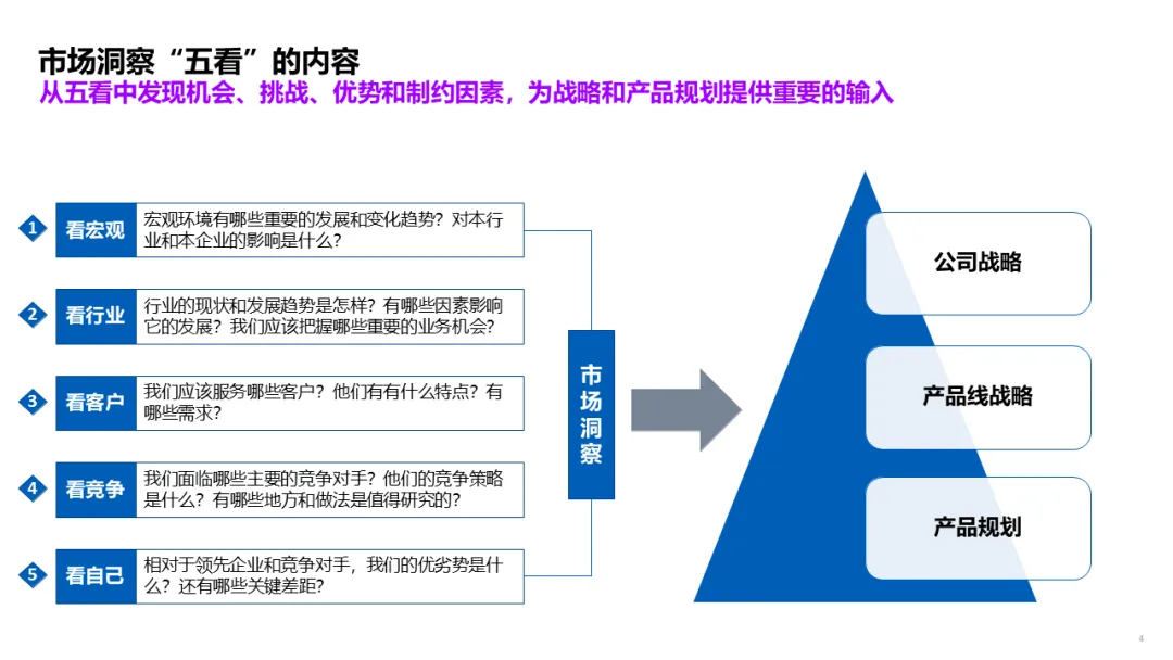 “五看”之间层层递进、相互印证,共同构成一个完整的市场洞察体系,为企业从战略制定到产品落地提供扎实的输入与依据。本文系统梳理该方法论的核心内容、分析工具与实践示例,旨在为战略规划者、产品管理者及市场研究人员提供一套可操作、可落地的市场分析与战略设计框架。