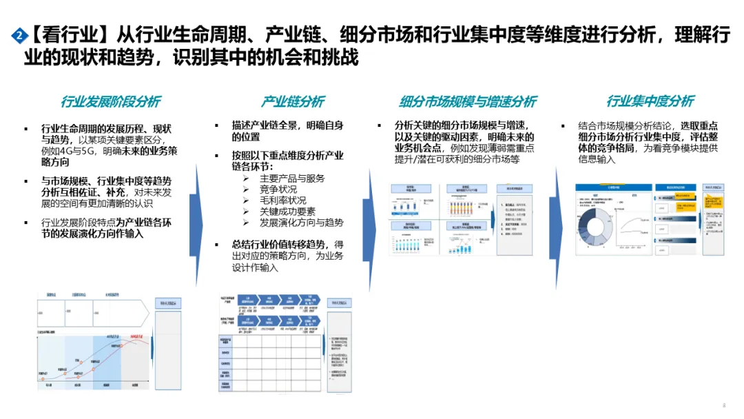 看行业:深入剖析行业生命周期、产业链结构、细分市场与集中度,识别行业发展趋势与关键机会点;