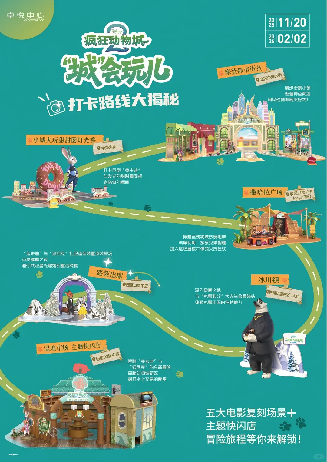 《疯狂动物城2》于2025年11月开始在深圳One Avenue举办为期两个多月的主题快闪,构建冰川镇、湿地市场等5大电影复刻场景,在商场中庭的主题快闪店提供正版周边选购,消费者打卡可兑换限定透卡。巨型朱迪装置成为城市热门出片点,带动商场客流与销售额显著提升,其联名周边更出现25元胡萝卜录音笔预售排期至2026年2月的火爆场景,进一步印证“内容+产品+体验”的全链路赋能模式已成为行业主流。