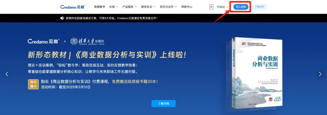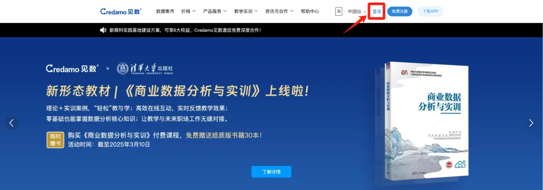 为帮助同学们更好地完成比赛,组委会公开了往届获奖团队的项目报告、答辩PPT等相关资料,供参赛选手参考,大赛组委会现已向所有报名参加商业分析赛道的师生免费升级教学实训平台高级账户。具体查看方式如下:【1】登录教学实训平台账号