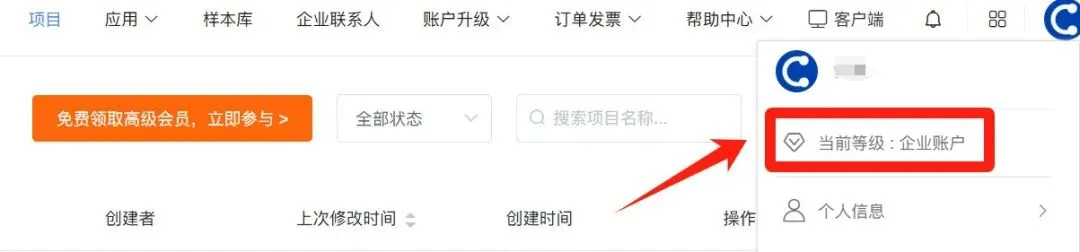点击右上角头像处【个人信息】,可查看当前账户等级,如显示高级账户,则代表账号升级成功。