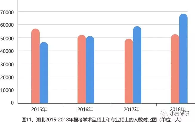 其中,多地甚至出现专硕报考人数超过学硕的现象,研招网继续用「湖北省」和「河北省」的数据为例。