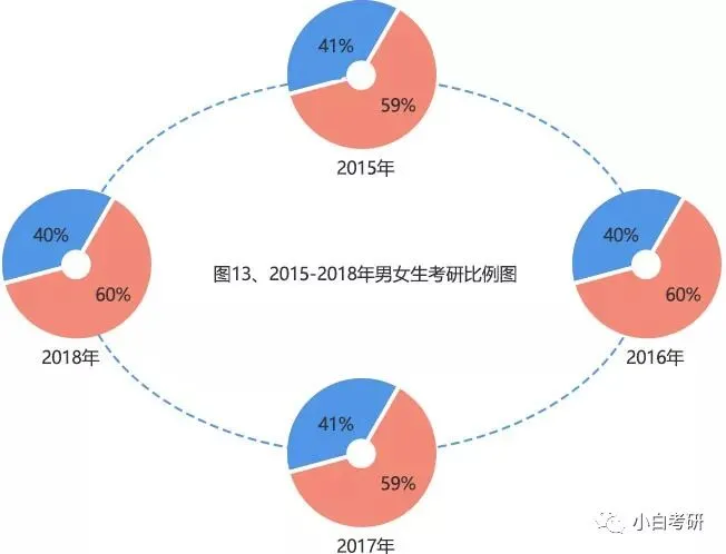 这点从小白考研后台的数据,以及小白团队的男女比例也可以体现,女生是考研群体的主流。