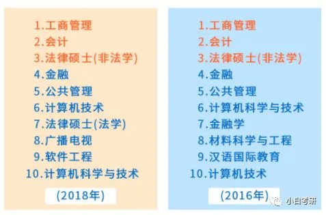 虽然过了三年,但MBA、会计、法律硕士(非法学)等依然是报考的热门专业。