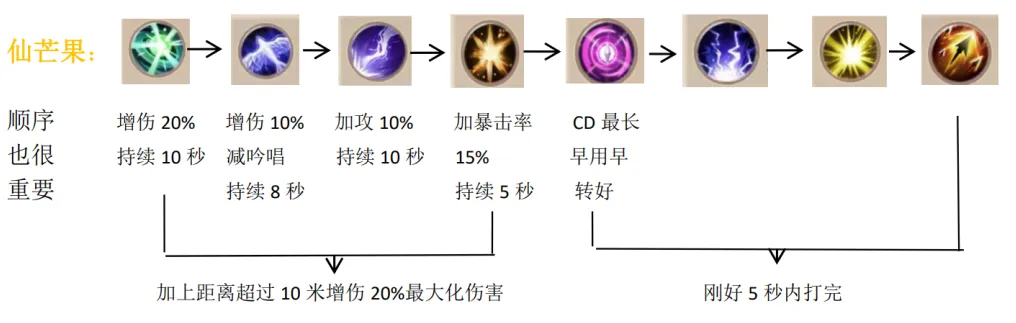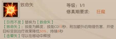 ![]() 落雷标记增伤10%,持续10秒 | ![]() 致命矢替换引而不发,CD减至15秒,减治疗50%持续8秒 | 仙增伤 魔减治疗 | |