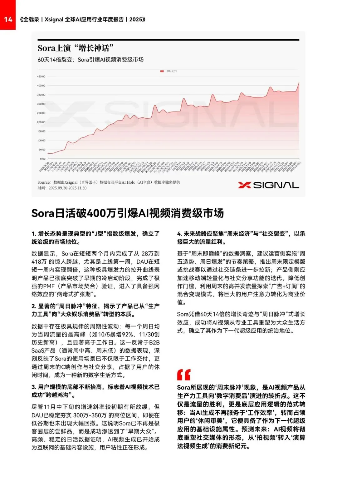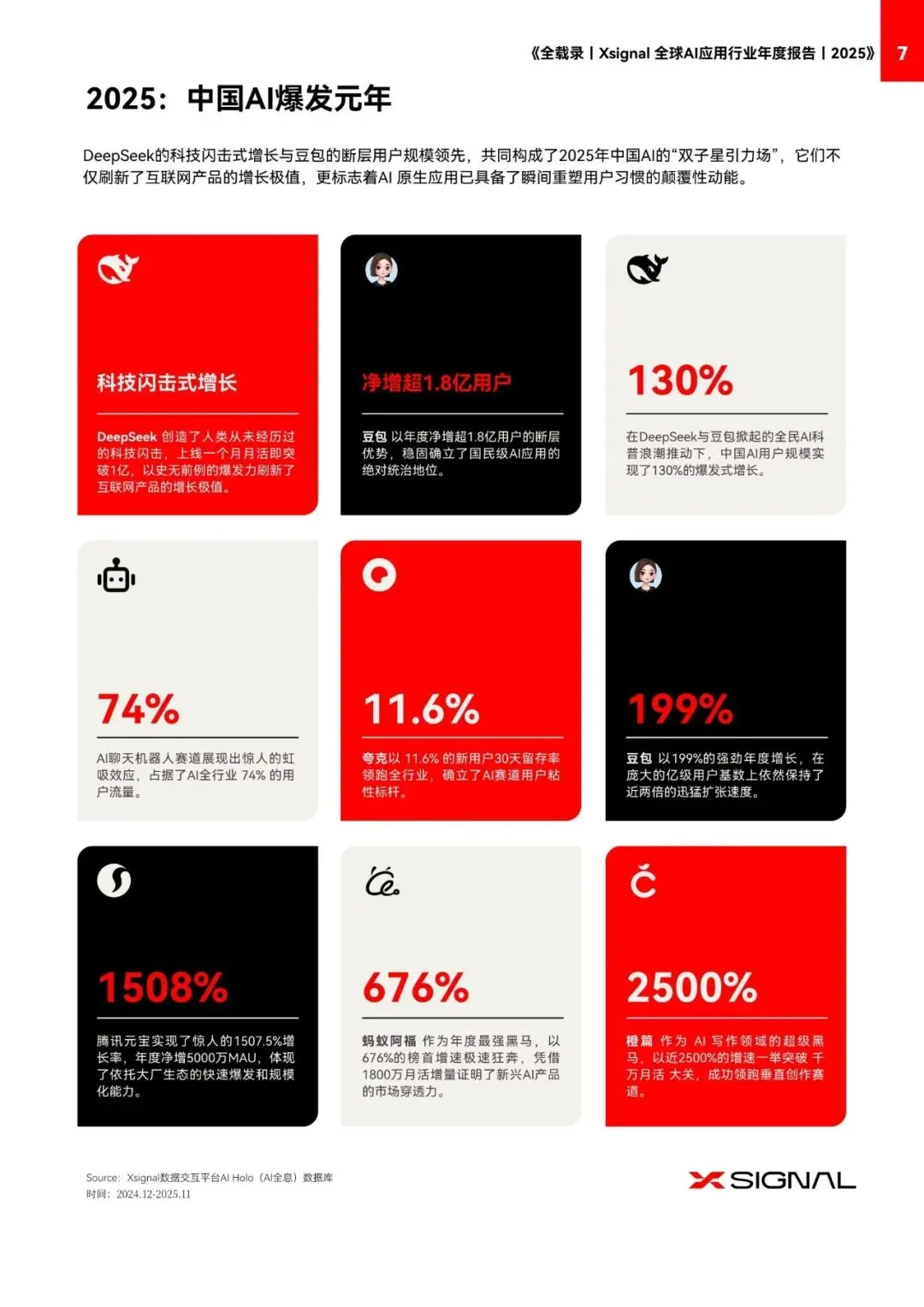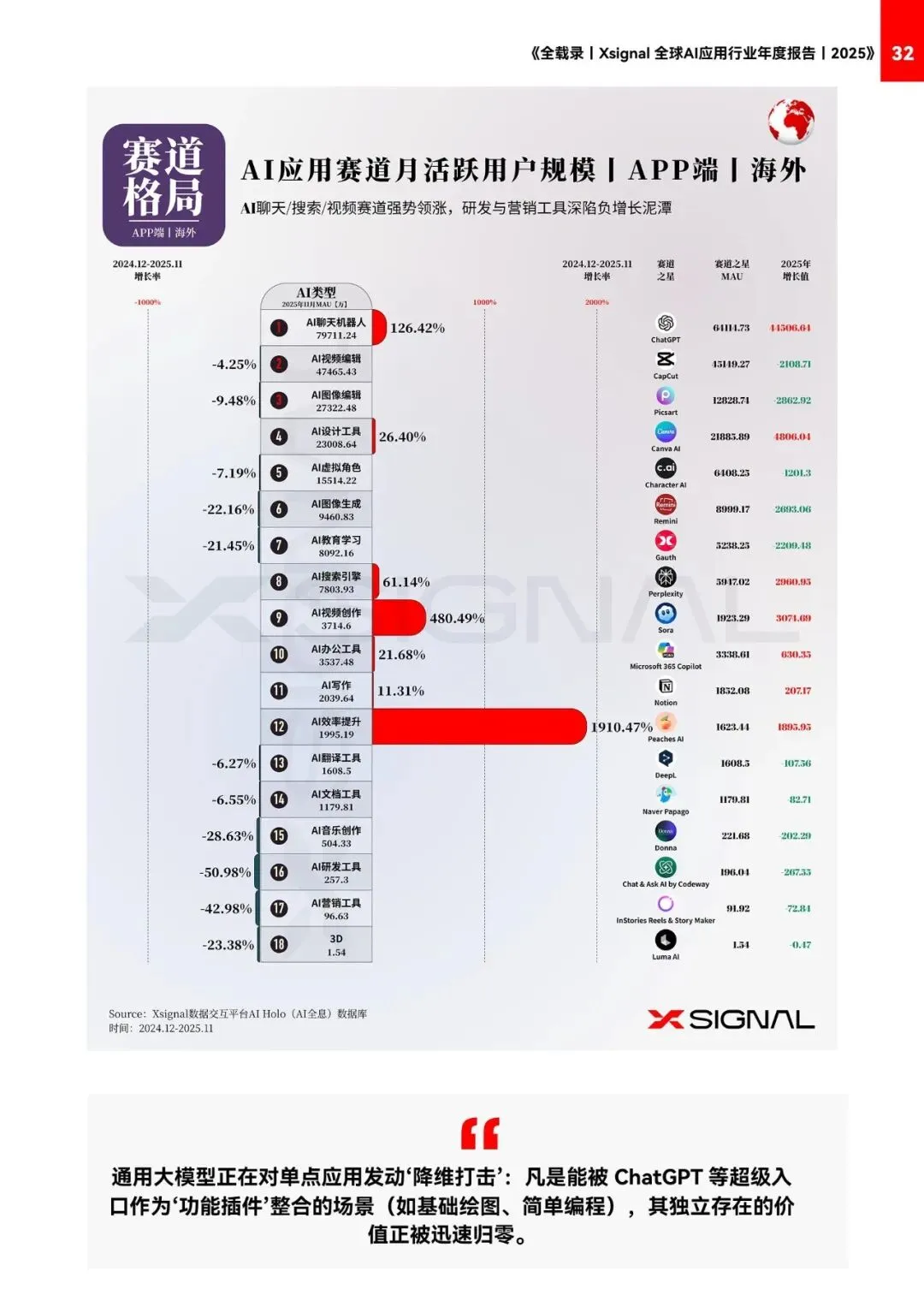 整体而言,2025年是AI应用行业的爆发元年,未来将从“智能生成”向“智能执行”进化,效率提升、视频创作和研发工具等赛道成为增长新引擎。报告呼吁从业者和投资者关注数据背后的用户需求和留存率,以构建真正的行业护城河。