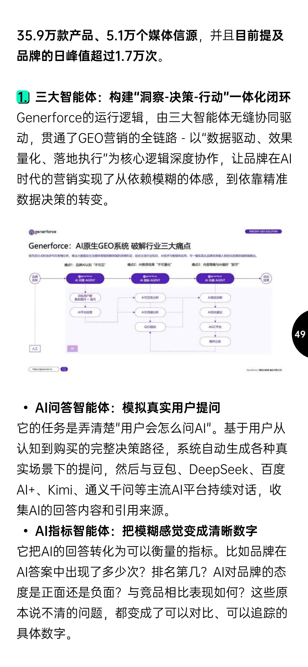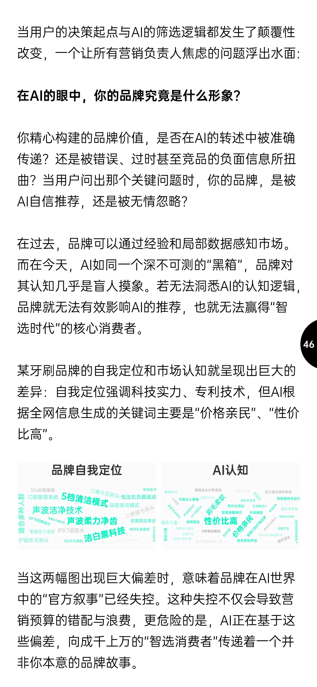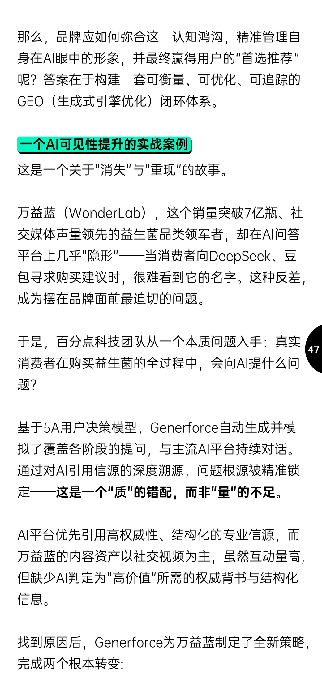 《2025中国GEO趋势与品牌增长策略报告:AI重塑消费决策》指出,AI正深刻重构消费者购物路径,催生了以“智选消费者”为代表的新兴用户群体。该群体年龄集中在20-39岁,具有高消费力、高黏性特征,偏好通过AI完成复杂、高投入的耐消品与专业服务类决策。报告揭示,AI正成为用户购物决策的“时间黑洞”,显著分流社媒与搜索引擎的时长,并重塑用户从需求激发、参数对比到最终决策的全流程。在“智选时代”,品牌需从“流量思维”转向“知识思维”,通过GEO(生成式引擎优化)策略,系统优化内容结构、渠道布局与语义表达,以提升在AI答案中的可见性与可信度。报告强调,AI不仅是工具,更是品牌与用户之间的新型连接媒介,品牌需构建可被AI识别与引用的“知识资产”,实现从“被搜索”到“被生成”的战略转型。