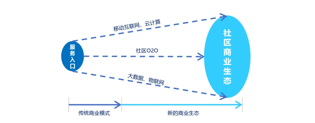 另外,服务模式的演进与变化,促使社区商业新形势的出现。从对物的管理,到通过互联网大数据而对人的管理。物业成为服务入口,社区成为商业生态,从传统商业模式向新的商业模式的转变,为社区商业的发展创新注入全新活力。