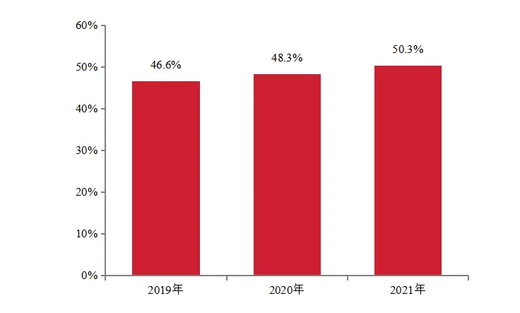 随着房地产市场竞争日益激烈,土地成本居高不下侵蚀企业利润空间。101-200强代表企业2021年新增土地楼面均价占销售均价比重的均值为50.3%,同比增长了2.0个百分点。土地成本高企一定程度上挤占了企业的利润空间。