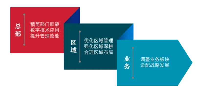 101-200强企业可在市场竞争中做出快速反应,发挥灵活机动优势。总部层面,101-200强企业实行精简化区域管理结构,提升管理效能。区域层面,优化区域管理结构,通过总部统一协调,合理配置资源区域布局,从而达到强化区域深耕目标;通过地区公司精简合并区域公司,简化内部流程,提高组织效率和运营效率。业务层面,从战略层面统筹各多元业务发展,实现资源配置优化。一方面,房企优化业务板块,裁撤或者合并部分业务。另一方面,新设部分业务事业部,加大业务发展力度,使业务适配总体战略发展。