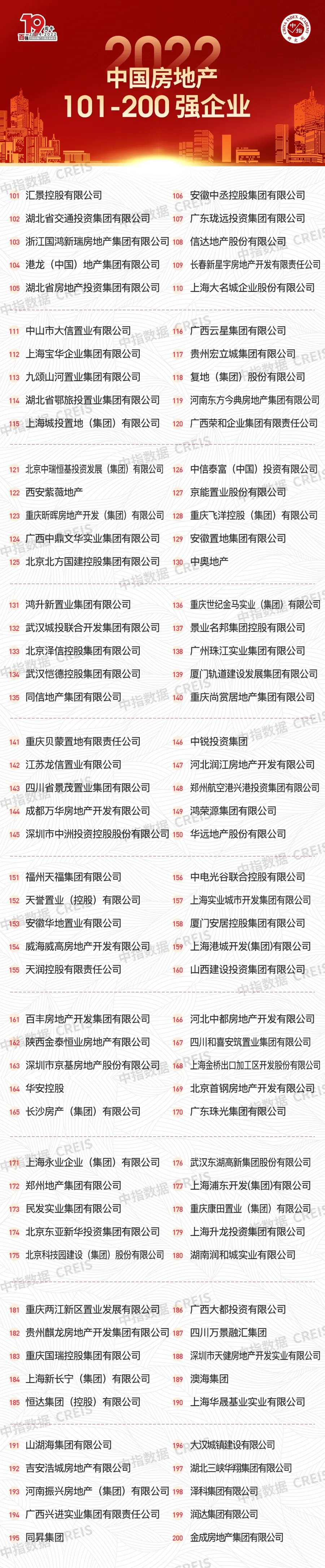 当前,统筹疫情防控和经济社会发展,宏观经济稳中向好。坚持“房住不炒”定位实现“三稳”目标,维护房地产市场平稳健康发展。在新形势下,房地产企业应增强风险意识,强化经营管理水平,实现企业高质量的发展。在此背景下,房地产行业发展面临新形势,房地产企业应增强风险意识,强化经营管理水平,实现企业高质量的发展。为此,中指研究院在百强研究的基础上拓展研究101-200强企业群体,从规模性、盈利性、成长性、稳健性、融资能力、运营效率和社会责任感等七个方面全面、客观地评价企业的综合实力,以更加宏大的视角延伸研究边界,扎实中国房地产百强企业研究。(文末查看完整版报告获取方式)