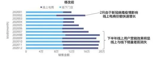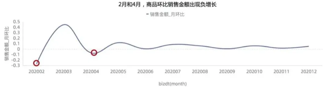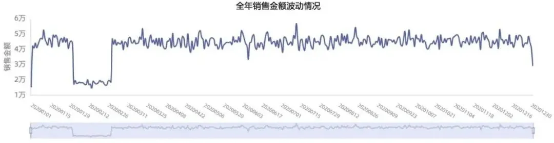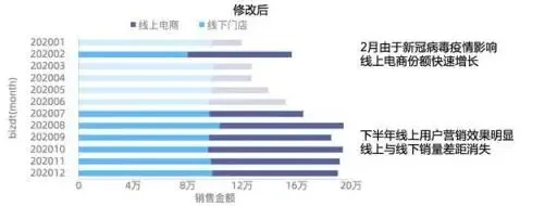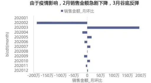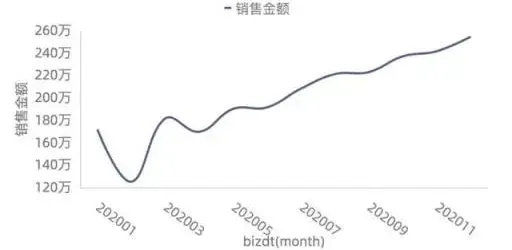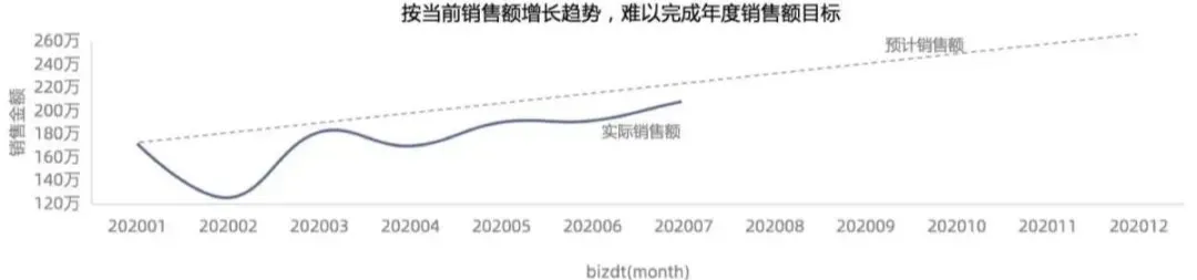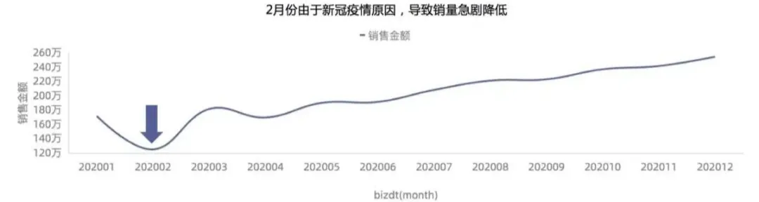如下图,这张图到底是为了表达全量销售金额没有明显的增长呢?还是为了表达2月份销售金额断崖式下跌?还是为了表达其它什么主题呢。请在标题上明确的告诉听众。