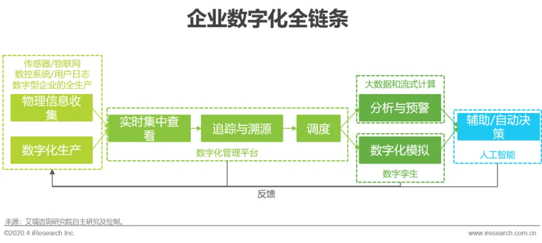 数字化转型:1)仅从存储、传输成本降低的角度完全无法体现数字化的优势,汇总、计算、查询和预警形成的反馈系统越来越快、越来越准,意义更为深远,这就好比“眼睛不承担任何运动功能,但是比任何运动器官更为重要,因为它是反馈系统”。得益于流式计算,营销领域的计算广告等应用已比较成熟。融合C to M理念的MES将成为新热点,其他各领域有待于进一步发展。2)模拟成本更低。除对已然事件即时反馈外,数字化有助于对未然事件进行模拟和预测,从而使得试错成本大幅降低。制造领域的CAD建模,建筑领域的BIM和CFD等,均是如此。数字化转型的本质是数字驱动。