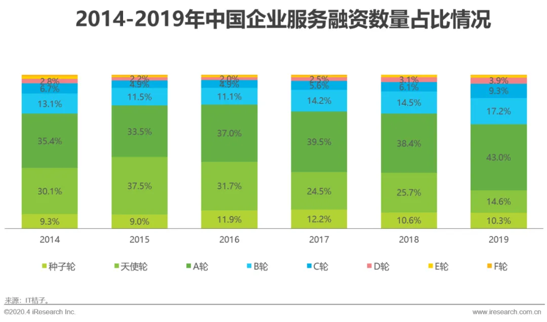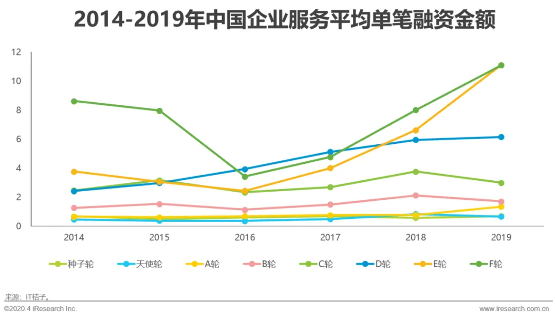 2015年后,消费互联网红利见顶,产业互联网迎来普遍关注,企业服务作为产业互联网中重要的组成部分,一度成为资本投资的风口赛道,早期投资(种子、天使、A轮)动作频繁,投资数量增长迅速。随着经济增速开始放缓,资本市场中的热钱趋冷,投资逐渐回归理性,后资本草莽时代也出清了大量早期投资机构,存活下来的早期投资机构普遍出手谨慎。标的方面,头部标的议价能力凸显,早期投资机构进入资金退出周期,后期投资机构开始接盘运作,成为目前市场主流,其单笔投资金额也在不断扩大。