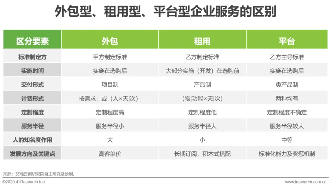 可分为外包型(项目型)、租用型(产品型)和平台型