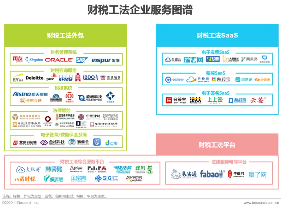 庞大的市场主体数量是财税工法服务的基石,2019年中国期末实有企业数量3858.3万户,个体工商户8251.0万户,市场主体数量同比增长12.0%。近年来减税降费政策密集出台,占比超过95%的中小微企业市场加速被激活,其财税管理升级的需求成为推动代理记账细分领域发展的核心动力。法律服务方面,我国互联网司法体系不断完善,杭州、北京、广州互联网法院先后成立,与之配套的“互联网+”法律服务对于促进高效便民服务、优化营商环境作用明显。与此同时,中小微企业对一站式服务的需求让财税工法服务提供商之间的界限变得模糊,代理记账、工商注册、法律电商等赛道的厂商开始相互渗透,拓展业务范畴,向一站式综合服务平台演进。