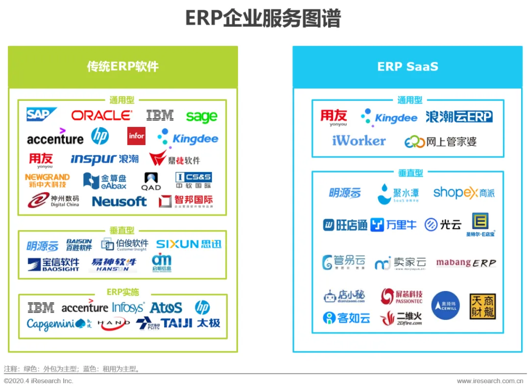 ERP是以系统化技术帮助企业改善经营管理的产品服务,实现生产、供应、财务、人力、营销全链条系统集成,提升垂直领域决策效率。早期传统ERP厂商多服务中大型企业,为其提供基于本地部署的、功能完备的定制化产品。中小企业由于业务场景单一,对功能的需求较少,且费用承担能力较低,ERP渗透率较低。但是随着ERP厂商的云端转型,服务逐渐走向场景化、便捷化和流程化,ERP在优化企业资源配置和提升管理效率方面的优势愈发显著,与中小企业需求的适配度变高;中小企业也将成为未来市场的核心增量空间。云ERP基于云部署,由厂商统一管理,模块间可进行高效资源整合,扩展性和业务场景适配性都更好。ERP的云端部署不仅能帮助大型厂商进一步简化操作流程,提高管理效率,而且其易操作、低成本、前期投入少的特点激活了中小企业的需求。ERP行业未来发展总体呈上升趋势,头部厂商整合加快。如金蝶推出金蝶云苍穹、金蝶云等,发挥ERP中台效用;用友也加快混合云部署和行业垂直场景开发,基于行业深度理解提供内部模块化,整体集成化服务。