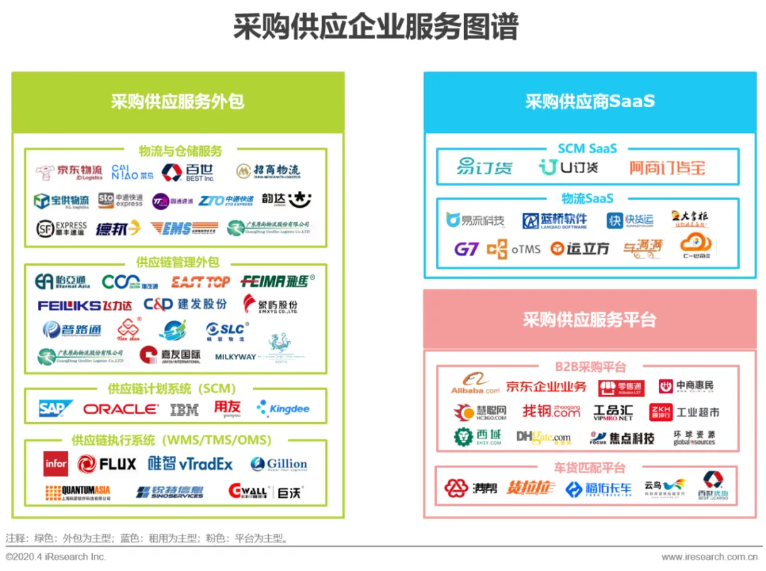 采购供应服务由传统单一业务模块发展而来,其主要涉及物流、仓储、采销B2B电商、供应链管理等领域,是致力于帮助企业整合业务单元的智能服务综合体。传统的采购供应服务是以业务单元的形式关注细分领域服务提升,如几大快递头部企业物流网络的铺设,采用机器分拣提高配送效率。但随着技术进步推动产业互联网发展,行业整体呈跳跃式增长和智能化趋势。目前物流业务仍在行业内占有较大比重,行业头部厂商在通过资本加持整合服务流程,如阿里、京东提出的搭建服务生态链,实现全链条采购供应服务的概念。这一举措旨在帮助企业实现前后端资源整合以及线上线下渠道贯穿,厂商提供智慧采购、智能供应链、智能制造、数据等服务。未来厂商将为多种规模企业提供贴近需求的多维度服务,如在个性化、质量控制、售后服务、金融配套等方面协同发展,同时也借助资本力量整合业内公司资源,强化智慧服务布局。