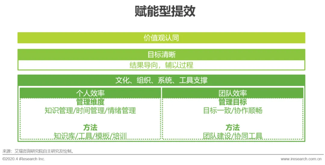企业通过流畅的系统、高效的工具、有效的培训为员工赋能,使员工提效,具有重要意义:1)它使得公司整体效率提高,这种提高并不过度依赖于个别员工,而体现在公司的整体竞争力上。2)员工被赋能之后,具有更高的成就感和幸福感。3)员工离职后带走的只是知识赋能的部分,采用系统和工具赋能时,员工发现自身价值的发挥与公司“顺滑”的支撑是分不开的, 从而进一步降低优秀人才的离职率。