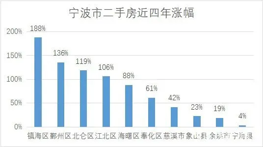 近四年,镇海涨幅最高。一张图看懂各区涨幅: