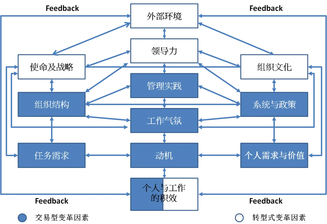 至于另外的8个因素,Burke将它们归类为交易型因素(Transactional factors),在组织进行变革或转型时,是不可或缺的关键,却也是可以事先规划及实施,以保证组织转型的绩效。