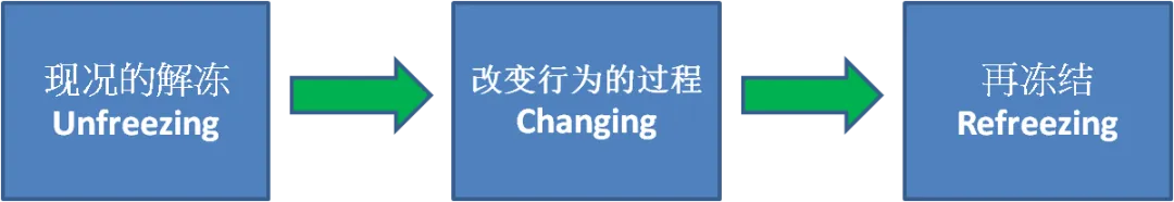 谈到变革管理的学习,就不得不提到变革管理大师Kurt Lewin及他所提出的三阶段变革理论:现况解冻 – 改变行为的过程 – 再冻结。(如图2)