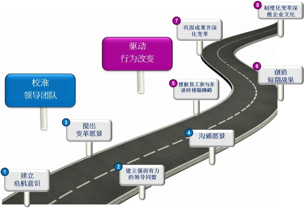 基于这八个错误,John P. Kotter发展出著名的变革八阶段模型(如图3)。