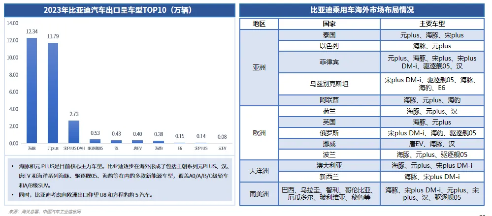 除了产品出口外,民族汽车品牌企业还通过投资建厂的方式布局东南亚市场,尤其是泰国,在EV3.5政策的推动下,比亚迪、上汽、合众、广汽埃安、长安、长城等均在泰国建设了生产基地。另一个“扎堆”的是以新能源汽车进入欧洲市场,但目前除了本身根植于欧洲的MG\极星\领克以及龙头比亚迪外,其他品牌在欧洲的销量相对较小。