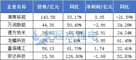 业绩上来看,受益于储能电池及动力磷酸铁锂电池的高增长磷酸铁锂相关企业营收增长迅速。但统计中的湖南裕能、万润新能、德方纳米、龙蟠科技、富临精工、安达科技6家上市企业,只有富临精工一家实现营收、净利双增。
