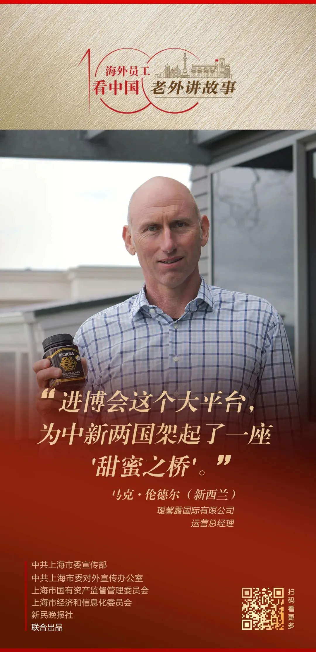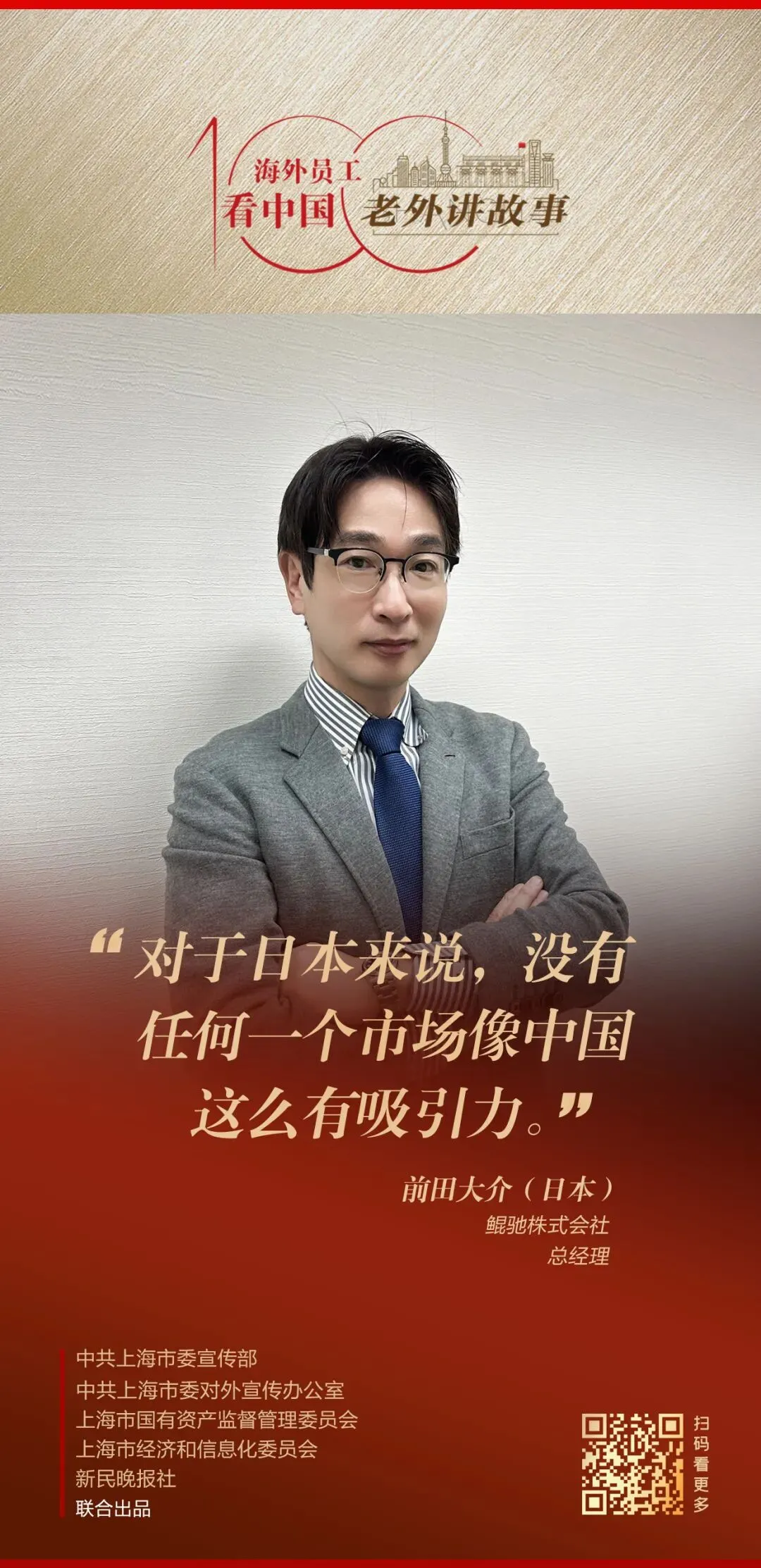 由中共上海市委宣传部、中共上海市委对外宣传办公室、上海市国有资产监督管理委员会、上海市经济和信息化委员会、新民晚报社联合出品的《老外讲故事•海外员工看中国》百集融媒体产品最新推出63、64期内容,鲲驰株式会社总经理前田大介、瑷馨露国际有限责任公司运营总经理马克·伦德尔讲述自己身处中国企业、观察中国的真实感受。详见↓