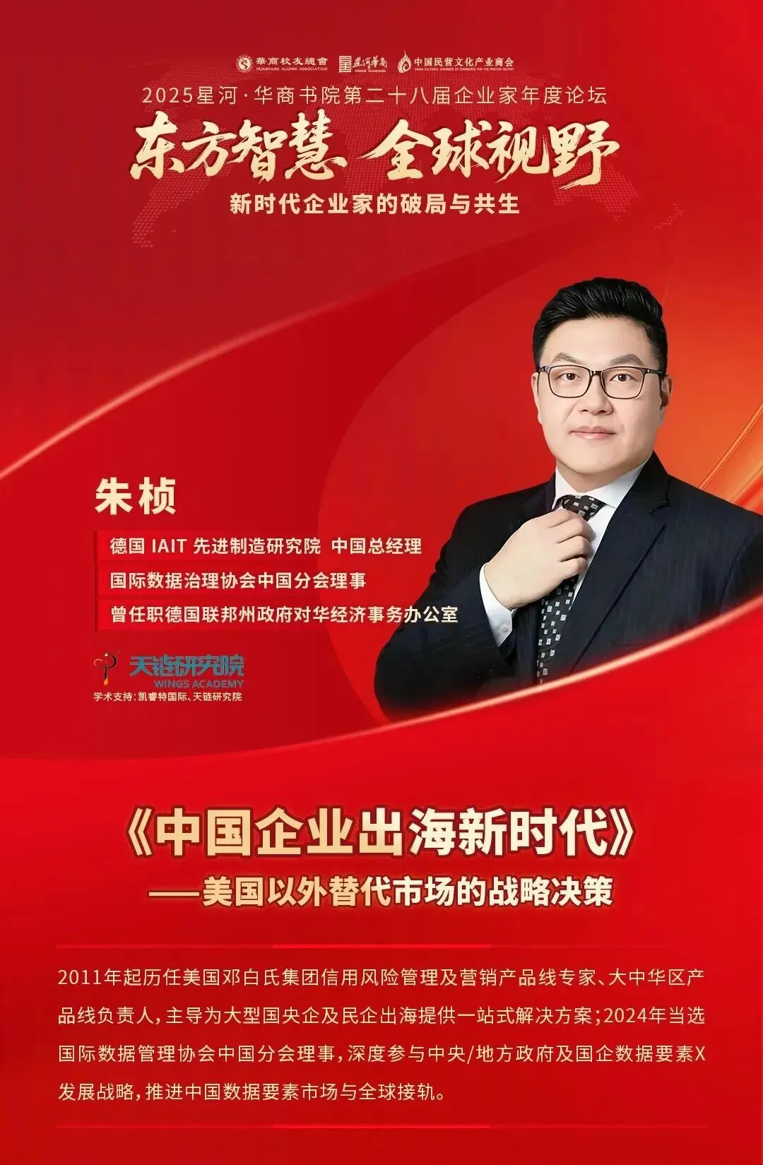 近日在江苏昆山举行的“东方智慧·全球视野”——新时代企业家的破局与共生2025星河·华商书院第二十八届企业家年度论坛上,德国机构工作专家朱桢博士就中国企业出海面临的挑战与机遇进行了深入分享。他指出,随着全球贸易格局的变化,中国企业正面临前所未有的不确定性,但同时也蕴藏着巨大的发展潜力。