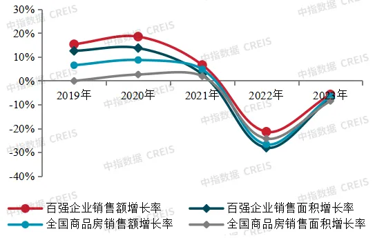 房地产市场仍处于调整阶段,百强企业顺势而为,聚焦核心城市核心区域,把握市场主流需求抢收回款。2023年,百强企业销售总额、销售面积分别达53896.0亿元、26131.6万平方米,同比分别下降5.8%、7.4%,表现略好于全国水平。在行业不断洗牌的过程中,“大而不强”的企业逐渐掉队,也必将涌现出一批新的优质企业,促进房地产行业平稳健康发展。