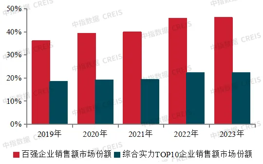 图2:2019-2023年百强及综合实力TOP10企业市场份额