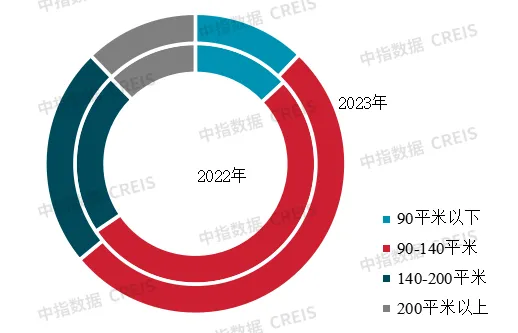 图4:2022、2023年百强代表企业重点项目各面积段销售占比