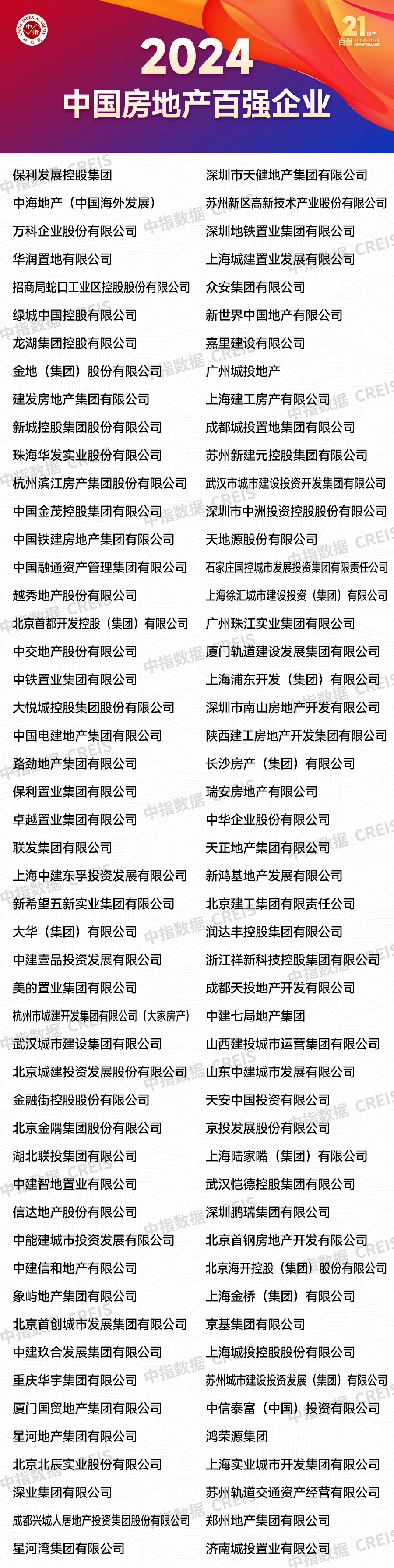 当前形势下,政策指出“一视同仁”支持房企融资,提出“三个不低于”,标本兼治化解房地产风险,适应新型城镇化发展趋势和房地产市场供求关系变化,加快构建房地产发展新模式。在此背景下,房地产企业要顺应新的形势,积极作为,轻重并举,以销定投,实现稳健发展。为此,研究组启动“2024中国房地产百强企业研究”,以“顺势而为,行稳致远”为主题,发掘行业中综合实力强、经营稳健、社会责任感强的优秀房地产企业群体,鼓励企业提质增效增强内生动力,实现高质量发展。