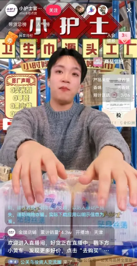 1.6 渠道融合与市场渗透小护士公司加速线上线下渠道融合,以“技术+市场”双驱动强化电商布局。2025年,在国内主流电商平台建立销售网络,并通过差异化产品(如高性价比、进口原材料卫生巾)提升其在北方市场的份额,并和公关鸟品牌团队建联,开始向境内境外市场渗透。