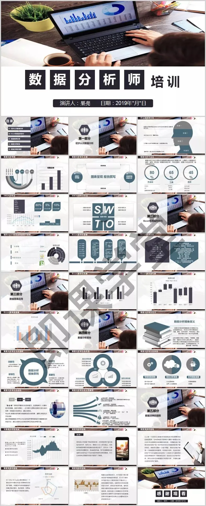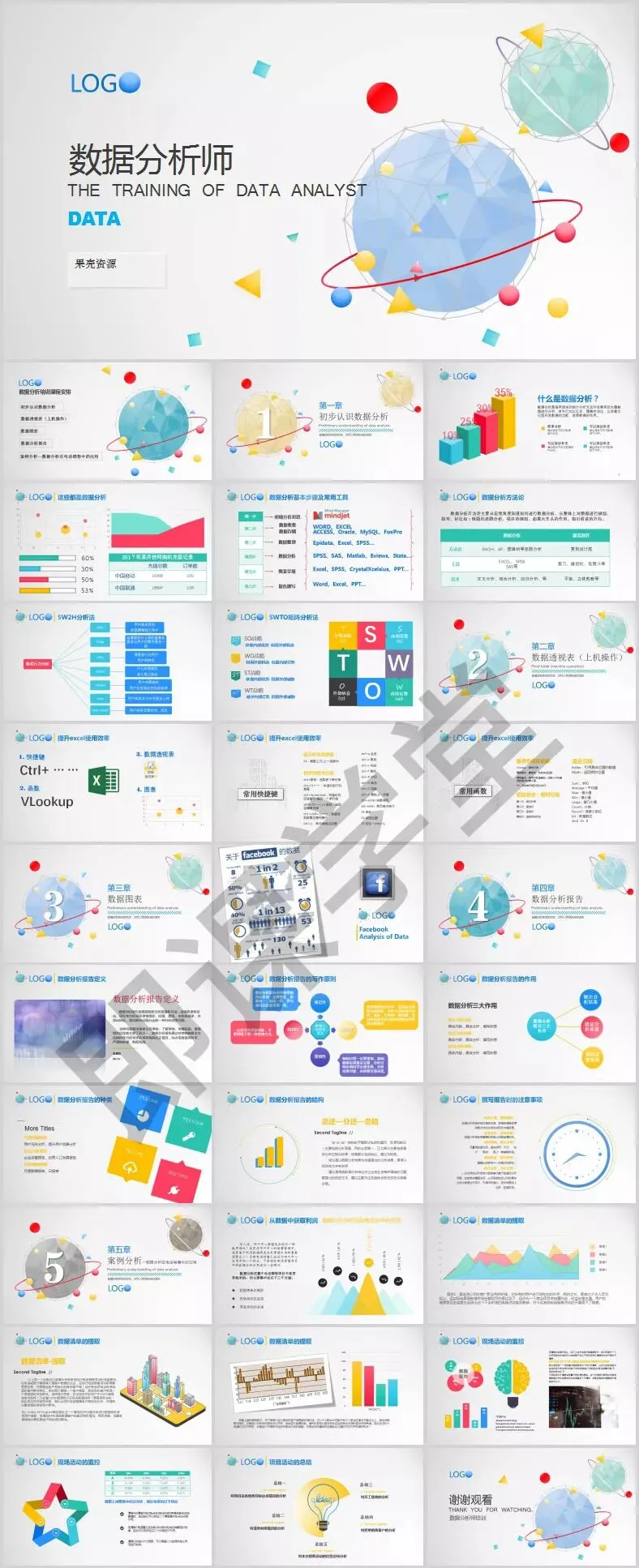 本套数据分析工具包一共11份PPT+25份Excel,适用于各模块工作,拿来即用。