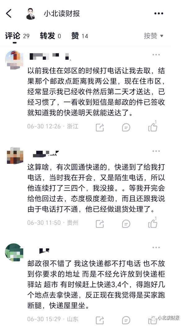 的快递下午给你放在哪里,公司要求我们快递员打电话……”