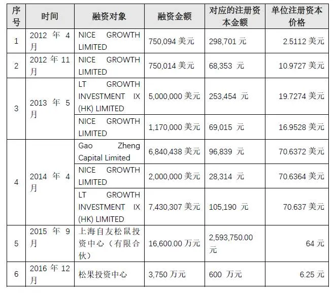 公司成立以来历次融资情况如下: