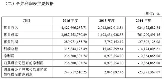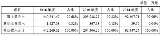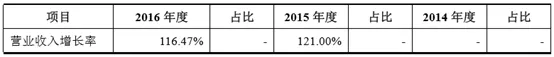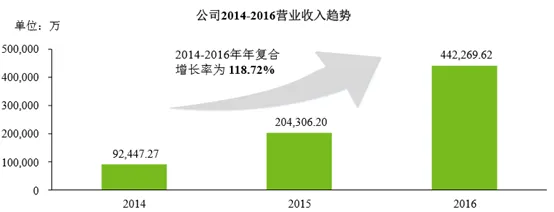 2014年至2016年,营业收入年复合增长率为118.72%: