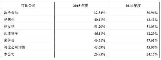 【三只松鼠的综合毛利率较线下企业的综合毛利率为低,主要原因是线下销售企业的推广成本(如店面租金、现场销售人员工资等)较高,必须要高毛利来弥补这方面的成本。线上销售企业则不存在这部分推广成本,因此可以承受较低的毛利率。线上企业的销售费用中物流费用占了很大的比例,三只松鼠的近三年的物流费占销售费用的比例均大于30%。】